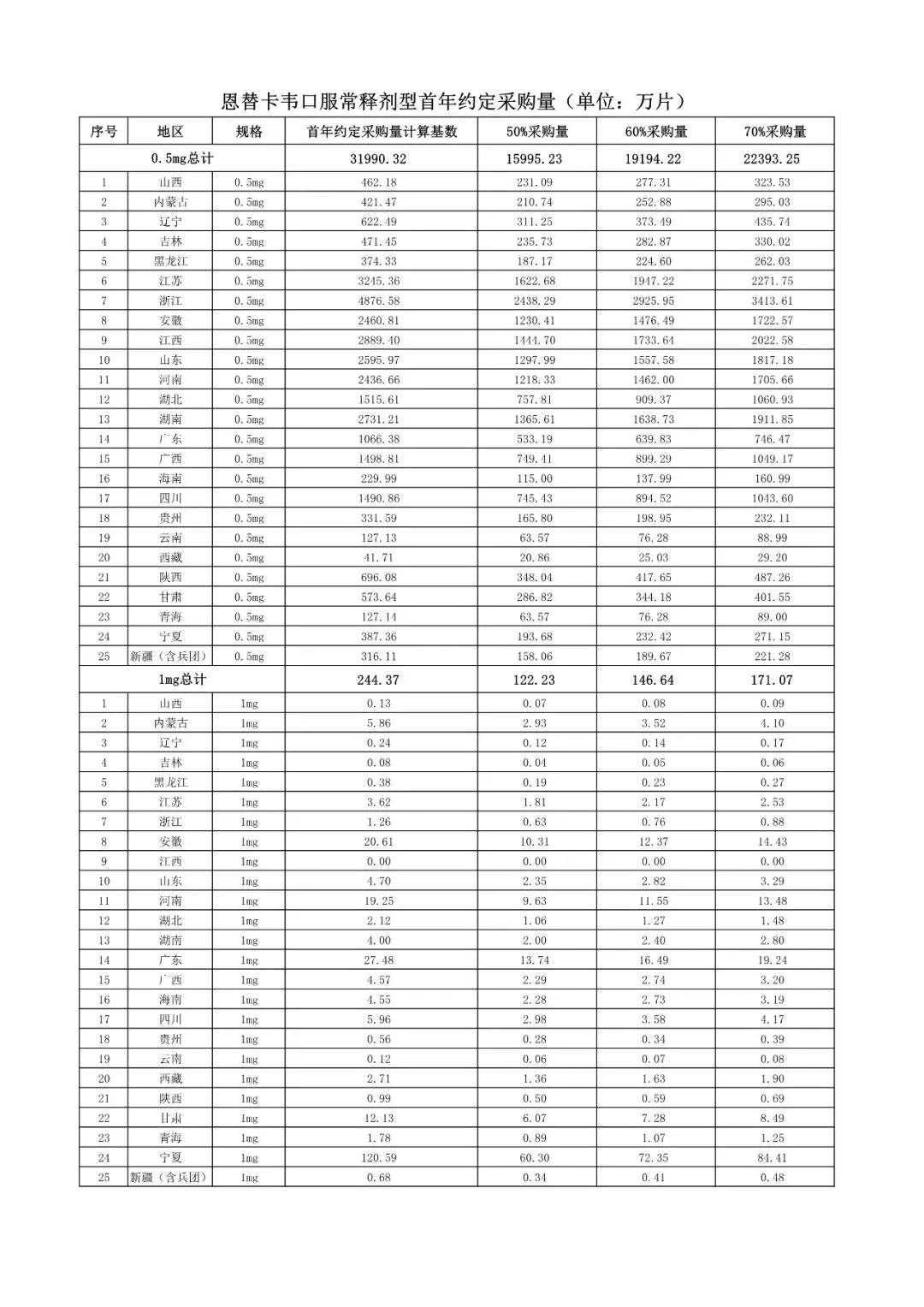 9月1日,上海阳光医药网公布了《联盟地区药品集中采购文件》,带量采购从原有的4+7区域(北京、上海、天津、重庆四个直辖市+沈阳、大连、厦门、广东、深圳、成都、西安)向江苏、浙江、安徽、山东、广东等25个地区推开,基本囊括了全国绝大部分省份。品种为阿托伐他汀、厄贝沙坦等。有业内人士指出,本次带量采购从4+7区域向全国推开,其实是在市场意料之内,毕竟4+7扩面已经具备了执行基础,首批“4+7”带量采购取得了25个中选品种平均降幅52%,最高降幅96%的降价成果。目前来看,11个试点城市执行较为到位,某些城市如西安,已经超额完成采购量并继续追加。医械汇判断,从2020年开始,集采品种将更加多元化,届时将扩容到其他通过一致性评价的品种。根据文件中公布的各省的首年约定采购量计算基数,25个地区的集采体量是此前4+7的采购量的3-5倍。以阿托伐他汀和氯吡格雷为例,先后采购量巨幅增长,因此本次集采结果的重要性可见一斑。